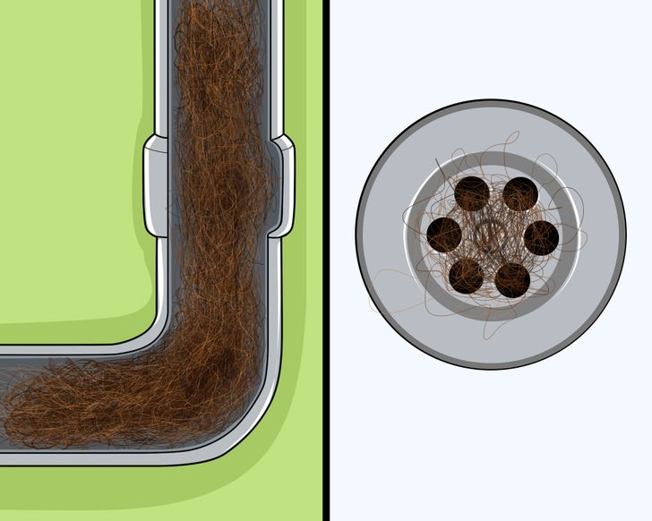 Strands drifting into a drain tangle and weave into nets that snare soap, skin cells, and residue. Over time this mat thickens and slows drainage.