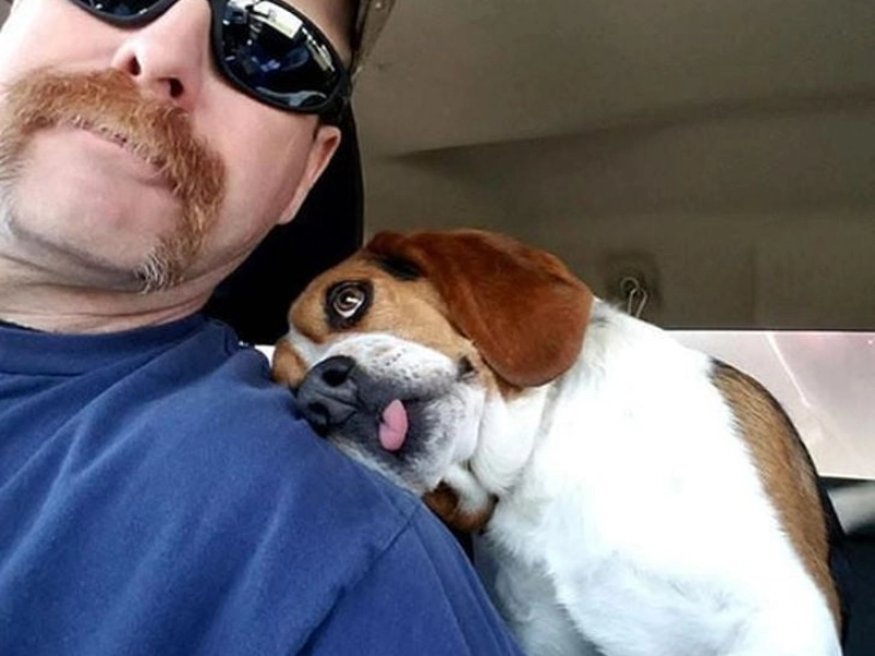 Joe saved Gregory just before a scheduled euthanasia at a local shelter, bringing the beagle to Hound Rescue and Sanctuary. Gregoryโs bright freedom ride hug radiates gratitude.