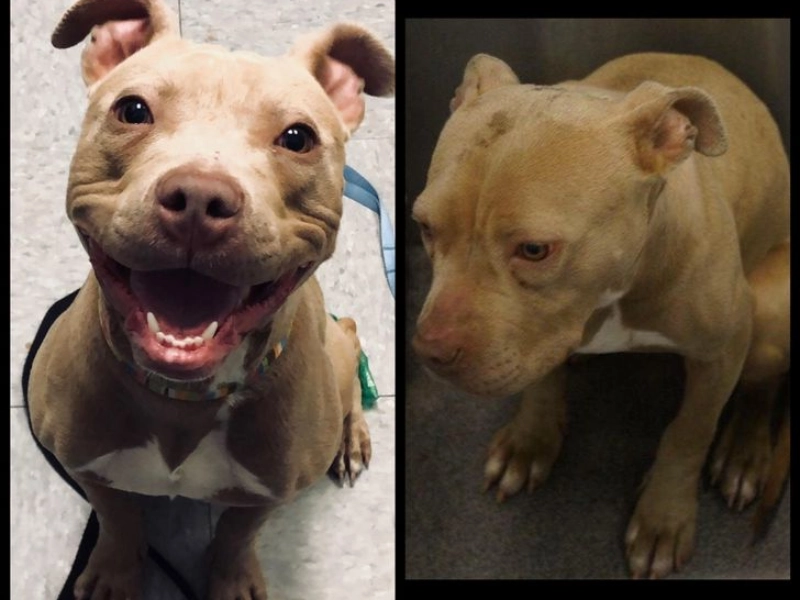 Lou looked tense and sad in the shelter, and now he beams with real joy. Yes, dogs can smile.