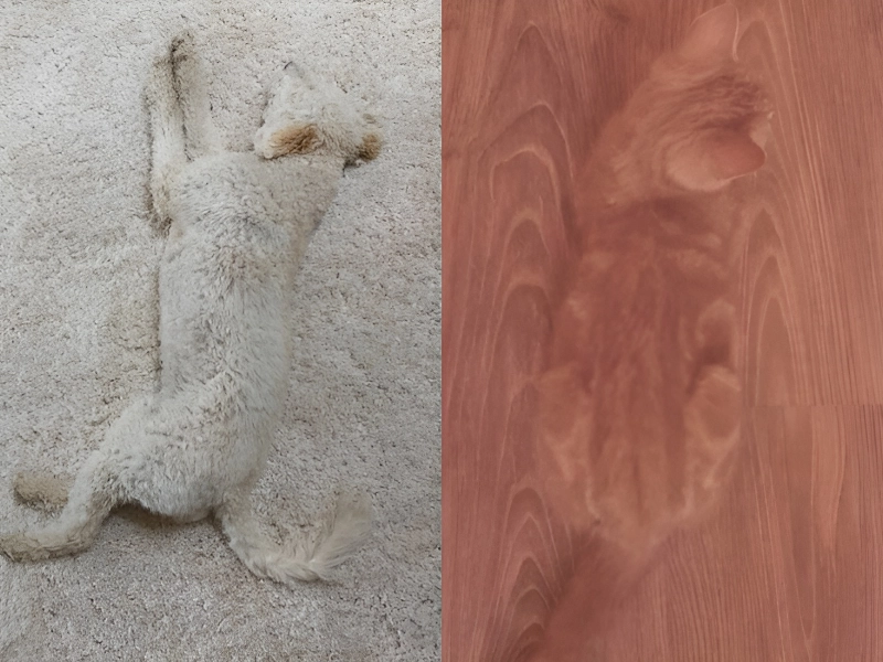 A ginger cat dilutes into similarly warm background tones. Fur chroma leverages environmental palette showing organic coloration as adaptive design tuned over time.