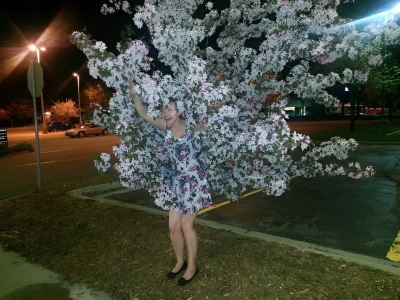 The harmony is nearly absolute. Fabric tone, scale, and directional lines synchronize so tightly with the setting that only a slight edge break betrays occupancy. It becomes a study in how minimal contrast governs visibility and how style can masquerade as spatial structure.