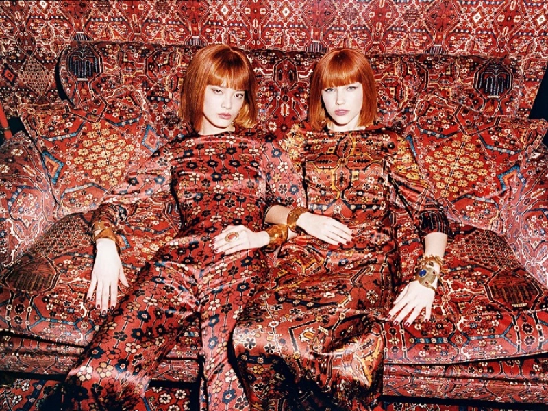 Two dresses born of surplus fabric unintentionally reenact their surroundings. Material economy becomes optical poetry as repeating motifs fold wearers back into the environment with tongue in cheek elegance.