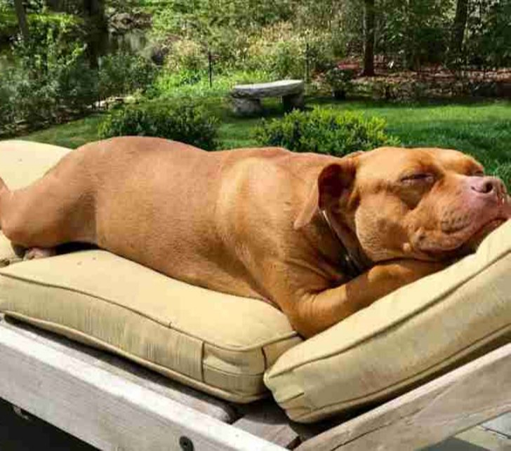 4. This dog slept on concrete for eight years; now she has all the beds she wants.
