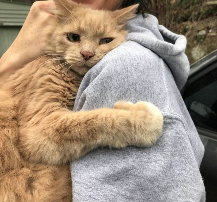 Reunited relief radiates from both. That tight cling shows trust, fear released, and gratitude. Their embrace underlines how deeply animals bond with their humans and how real their emotions are.
