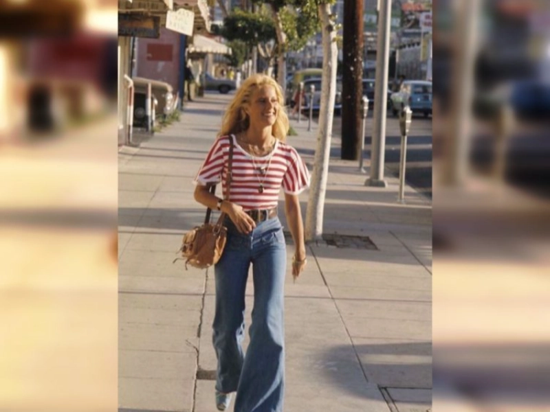A smiling blonde radiates spontaneous optimism, her relaxed expression and lively styling capturing the carefree momentum often associated with youth culture of the era, where natural beauty and playful attitude coexisted.