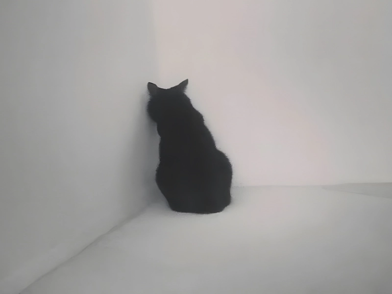 Echoing the famous line, this cat faces the wall in chosen solitude.