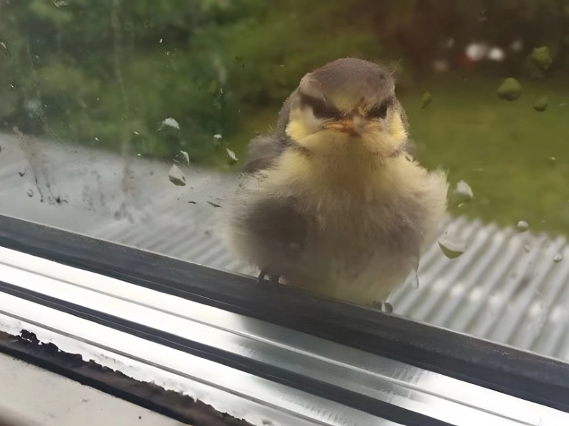 This bird’s fierce window stare suggests a game boss preparing an attack.