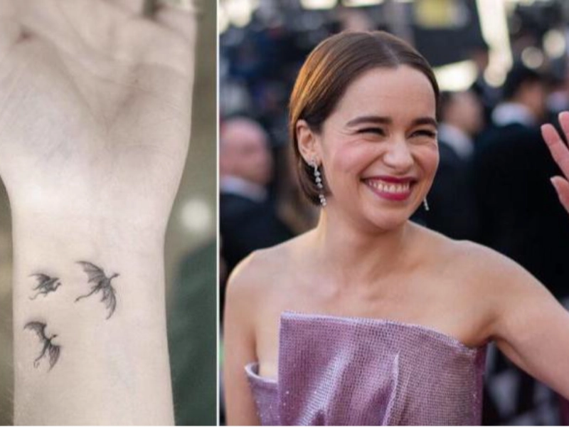 Post series Emilia Clarke added tiny wrist dragons linking her to Daenerys and that powerful arc.